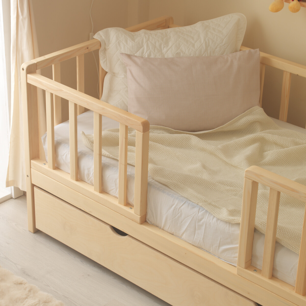Çocuğunuzun bağımsızlığını ve özgüvenini destekleyin. Tamamen %100 doğal köknar ağacından üretilen Montessori yatağımız, onun odasında güvenle hareket etmesi ve kendi alanını özgürce keşfetmesi için tasarlandı. Yere yakın yapısı sayesinde düşme endişesi olmadan, çocuğunuzun kendi başına yatağına girip çıkmasına olanak tanır.